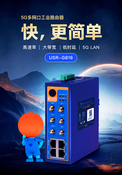 在这场产业变革中,以USR-G816为代表的5G工业路由器,正通过持续的技术迭代重新定义工业通信标准。其700Mbps的实测下载速率、0.5ms的空口时延、99.999%的可靠性指标,正在为智能制造、智慧能源、智能交通等领域注入新动能。当5G遇见工业互联网,一场关于效率与创新的革命已然拉开帷幕。