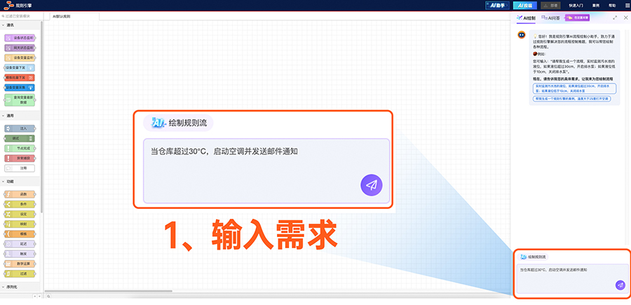 只需输入一句自然语言描述,系统自动生成规则流程图,彻底告别手动拖拽、连线反复试错这些繁琐步骤。