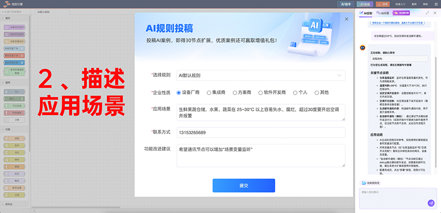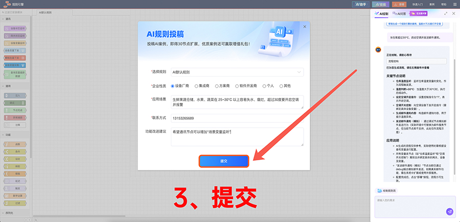 1、进入规则引擎,AI 完成规则绘制后 → 点击【AI投稿】;