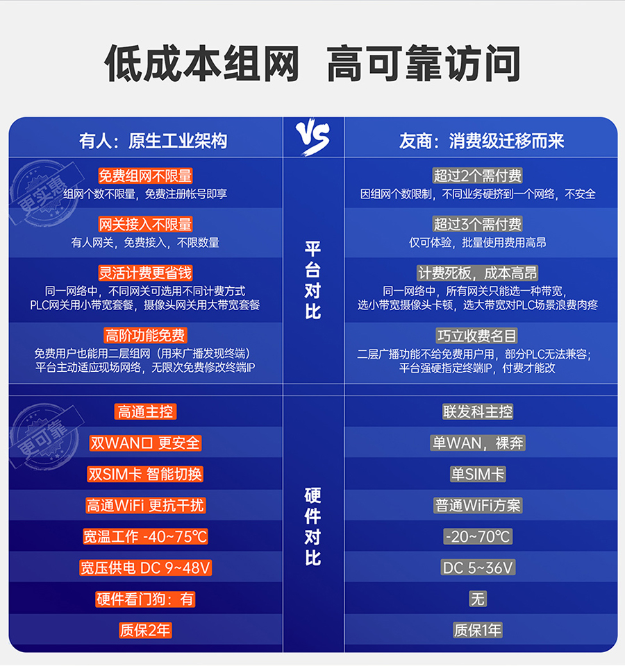 同一组网内根据每个网关下接终端的特性,可灵活选用更经济的计费方式:持续小流量终端用免费1M带宽,持续大流量终端推荐包年大带宽,低频大流量终端则适用组网流量包