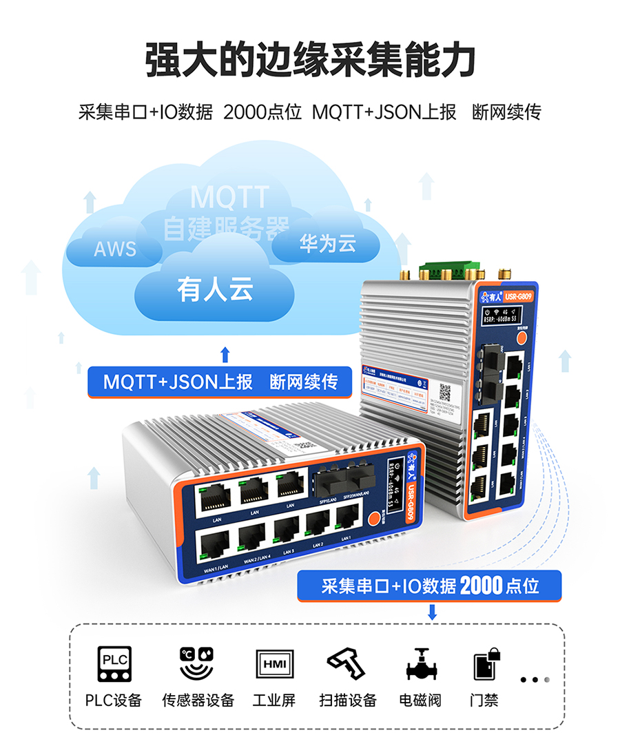 从机械控制到能源调度,从质量检测到安全预警,边缘计算正在重塑工业实时应用的技术范式。工业路由器作为边缘计算的核心载体,通过“计算下沉+网络优化”的双重创新,将延迟控制从“被动适应”转向“主动定义”。以USR-G809为代表的工业路由器产品,正以毫秒级的响应速度,为智能制造、智慧能源、智慧物流等领域提供更高效、更安全、更智能的实时性保障。在工业4.0的赛道上,谁先掌握边缘计算技术,谁就掌握了未来竞争的主动权。
