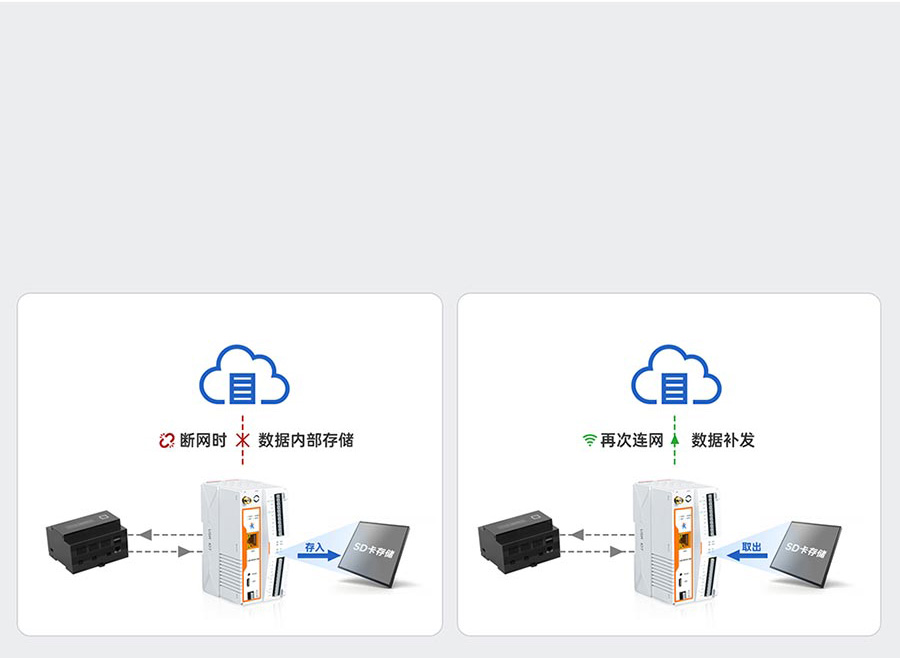 在网关意外断网时,依旧可以采集和存储数据,待网络恢复后