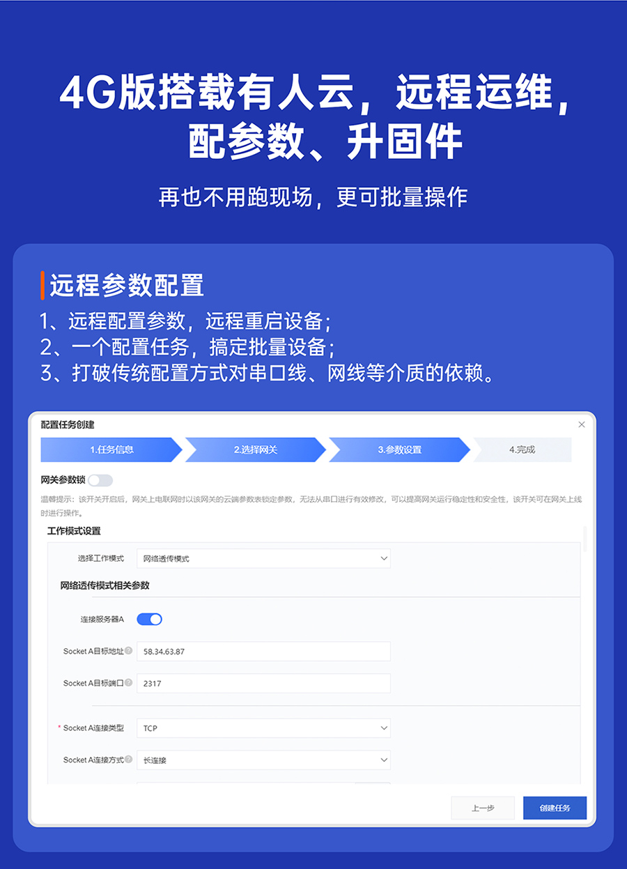网络透传(TCP、UDP Client)、HTTPD模式 、MQTT模式